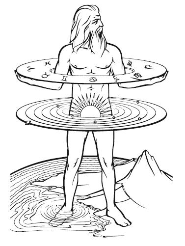 Десять сефир составляют тело Адам Кадмон – первочеловека, идеального существа, созданного по образу и подобию Бога. Зодиакальный круг проходит на уровне его груди, круг планет проходит на уровне его бедер. Его правая нога стоит в воде, а левая на земле.