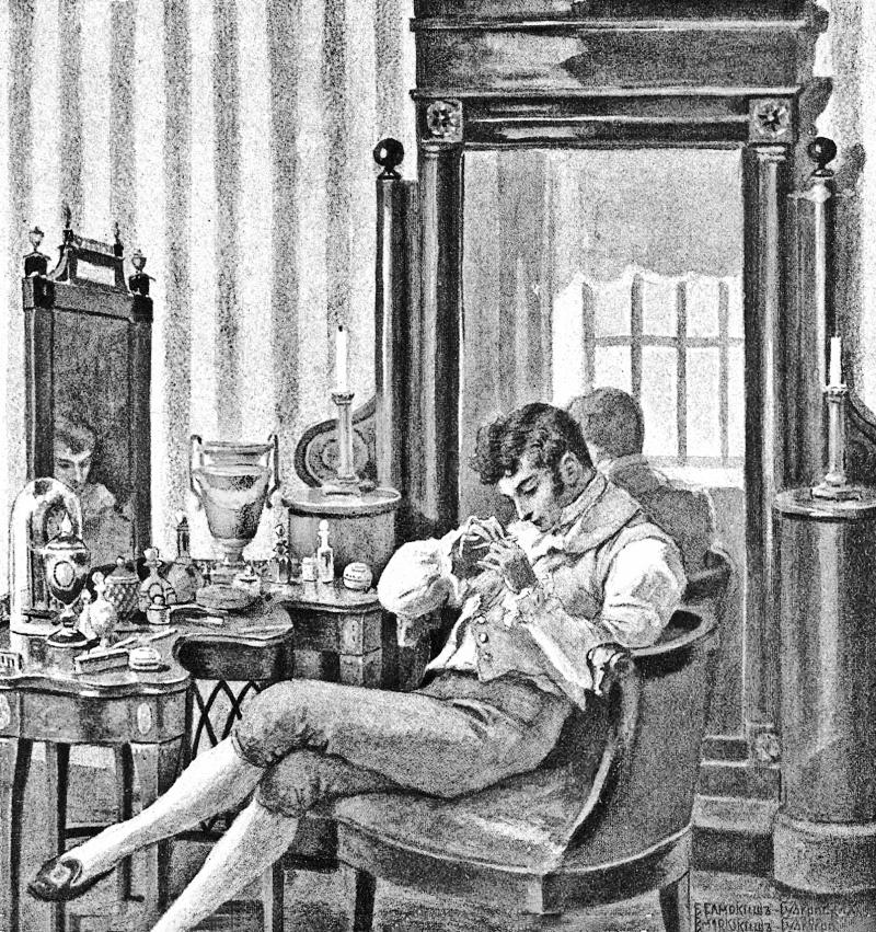 Prince ViazemskiI“My uncle's goodness is extreme,If seriously he hath disease;He hath acquired the world's esteemAnd nothing more important sees;A paragon of virtue he!But what a nuisance it will be,Chained to his bedside night and dayWithout a chance to slip away.Ye need dissimulation baseA dying man with art to soothe,Beneath his head the pillow smooth,And physic bring with mournful face,To sigh and meditate alone:When will the devil take his own!”IIThus mused a madcap young, who droveThrough clouds of dust at postal pace,By the decree of Mighty Jove,Inheritor of all his race.Friends of Liudmila and Ruslan,[1]Let me present ye to the man,Who without more prevaricationThe hero is of my narration!Onéguine, O my gentle readers,Was born beside the Neva, whereIt may be ye were born, or thereHave shone as one of fashion's leaders.I also wandered there of old,But cannot stand the northern cold.[2]IIIHaving performed his service truly,Deep into debt his father ran;Three balls a year he gave ye duly,At last became a ruined man.But Eugene was by fate preserved,For first “madame” his wants observed,And then “monsieur” supplied her place;[3]The boy was wild but full of grace.“Monsieur l'Abbé” a starving Gaul,Fearing his pupil to annoy,Instructed jestingly the boy,Morality taught scarce at all;Gently for pranks he would reproveAnd in the Summer Garden rove.IVWhen youth's rebellious hour drew nearAnd my Eugene the path must trace —The path of hope and tender fear —Monsieur clean out of doors they chase.Lo! my Onéguine free as air,Cropped in the latest style his hair,Dressed like a London dandy heThe giddy world at last shall see.He wrote and spoke, so all allowed,In the French language perfectly,Danced the mazurka gracefully,Without the least constraint he bowed.What more's required? The world replies,He is a charming youth and wise.VWe all of us of educationA something somehow have obtained,Thus, praised be God! a reputationWith us is easily attained.Onéguine was – so many deemed[Unerring critics self-esteemed],Pedantic although scholar like,In truth he had the happy trickWithout constraint in conversationOf touching lightly every theme.Silent, oracular ye'd see himAmid a serious disputation,Then suddenly discharge a jokeThe ladies' laughter to provoke.VILatin is just now not in vogue,But if the truth I must relate,Onéguine knew enough, the rogueA mild quotation to translate,A little Juvenal to spout,With “vale” finish off a note;Two verses he could recollectOf the Æneid, but incorrect.In history he took no pleasure,The dusty chronicles of earthFor him were but of little worth,Yet still of anecdotes a treasureWithin his memory there lay,From Romulus unto our day.VIIFor empty sound the rascal swore heExistence would not make a curse,Knew not an iamb from a choree,Although we read him heaps of verse.Homer, Theocritus, he jeered,But Adam Smith to read appeared,And at economy was great;That is, he could elucidateHow empires store of wealth unfold,How flourish, why and wherefore lessIf the raw product they possessThe medium is required of gold.The father scarcely understandsHis son and mortgages his lands.VIIIBut upon all that Eugene knewI have no leisure here to dwell,But say he was a genius whoIn one thing really did excel.It occupied him from a boy,A labour, torment, yet a joy,It whiled his idle hours awayAnd wholly occupied his day —The amatory science warm,Which Ovid once immortalized,For which the poet agonizedLaid down his life of sun and stormOn the steppes of Moldavia lone,Far from his Italy – his own.[4]IXHow soon he learnt deception's art,Hope to conceal and jealousy,False confidence or doubt to impart,Sombre or glad in turn to be,Haughty appear, subservient,Obsequious or indifferent!What languor would his silence show,How full of fire his speech would glow!How artless was the note which spokeOf love again, and yet again;How deftly could he transport feign!How bright and tender was his look,Modest yet daring! And a tearWould at the proper time appear.XHow well he played the greenhorn's partTo cheat the inexperienced fair,Sometimes by pleasing flattery's art,Sometimes by ready-made despair;The feeble moment would espyOf tender years the modestyConquer by passion and address,Await the long-delayed caress.Avowal then 'twas time to pray,Attentive to the heart's first beating,Follow up love – a secret meetingArrange without the least delay —Then, then – well, in some solitudeLessons to give he understood!XIHow soon he learnt to titillateThe heart of the inveterate flirt!Desirous to annihilateHis own antagonists expert,How bitterly he would malign,With many a snare their pathway line!But ye, O happy husbands, yeWith him were friends eternally:The crafty spouse caressed him, whoBy Faublas in his youth was schooled,[5]And the suspicious veteran old,The pompous, swaggering cuckold too,Who floats contentedly through life,Proud of his dinners and his wife!XIIOne morn whilst yet in bed he lay,His valet brings him letters three.What, invitations? The same dayAs many entertainments be!A ball here, there a children's treat,Whither shall my rapscallion flit?Whither shall he go first? He'll see,Perchance he will to all the three.Meantime in matutinal dressAnd hat surnamed a “Bolivar”[6]He hies unto the “Boulevard,”To loiter there in idlenessUntil the sleepless Bréguet chime[7]Announcing to him dinner-time.XIII'Tis dark. He seats him in a sleigh,“Drive on!” the cheerful cry goes forth,His furs are powdered on the wayBy the fine silver of the north.He bends his course to Talon's, where[8]He knows Kaverine will repair.[9]He enters. High the cork aroseAnd Comet champagne foaming flows.Before him red roast beef is seenAnd truffles, dear to youthful eyes,Flanked by immortal Strasbourg pies,The choicest flowers of French cuisine,And Limburg cheese alive and oldIs seen next pine-apples of gold.XIVStill thirst fresh draughts of wine compelsTo cool the cutlets' see