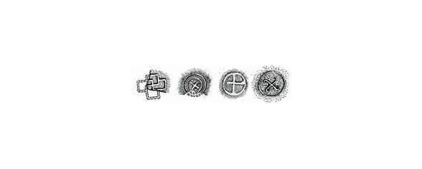 Мотивы из простых и сложнопрорисованных свастик помещены в качестве клейм на днищах сосудов 11—12 века найденных во время раскопок в Старой Рязани (табл. 9).