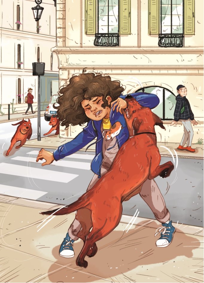 Там, в конце улицы! Три других пса такого же рыжеватого окраса! Такие же взбешённые! Псы злобно устремились к девочке.