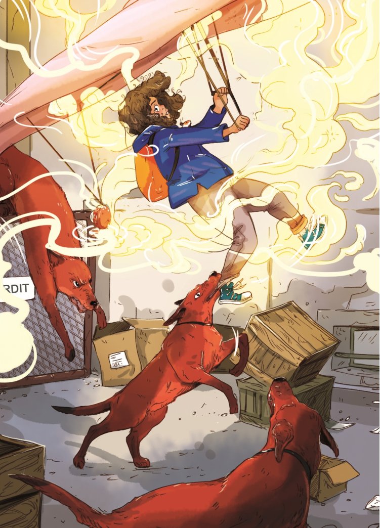 Вдруг откуда ни возьмись задул сильный ветер и сбил с ног двух других собак, которые успели перелезть через забор. Порыв был такой силы, что даже пёс, который вцепился в штанину Розы, потерял равновесие и от удивления разжал пасть. Тапенад успел скомандовать: