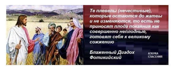 Другую притчу предложил Он им, говоря: Царство Небесное подобно человеку, посеявшему доброе семя на поле своем, когда же люди спали, пришел враг его и посеял между пшеницею плевелы и ушел, когда взошла зелень и показался плод, тогда явились и плевелы. Придя же, рабы домовладыки сказали ему: «господин! не доброе ли семя сеял ты на поле твоем? откуда же на нем плевелы?» Он же сказал им: «враг человек сделал это». А рабы сказали ему: «хочешь ли, мы пойдем, выберем их?» Но он сказал: «нет – чтобы, выбирая плевелы, вы не выдергали вместе с ними пшеницы, оставьте расти вместе то и другое до жатвы, и во время жатвы я скажу жнецам: соберите прежде плевелы и свяжите их в снопы, чтобы сжечь их, а пшеницу уберите в житницу мою» (Мф.13:24—30).
