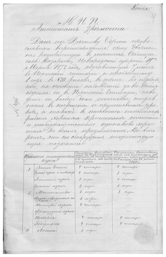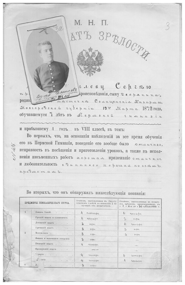 Рис. 4. Аттестат зрелости. ЦГИА СПб. Фонд 14. Опись 3. Дело 27819..