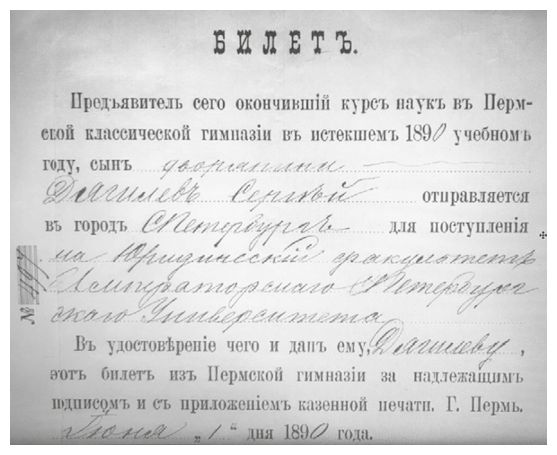 Рис. 2. Личное дело С.П. Дягилева. ЦГИА СПб. Фонд 14. Опись 3. Дело 27819.