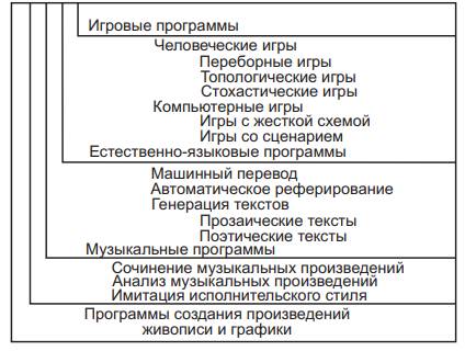 Эвристические программы могут играть в шахматы, шашки, карточные игры, находить ответы на вопросы, находить решения из области математических исчислений; доказывать теоремы в математической логике и геометрии; способны обучаться на основе своего опыта; решать различные классы задач. Здесь исследователь воспроизводит в компьютере методы, используемые людьми, т.к. интеллект человека выше интеллекта компьютера. Структура программ решения интеллектуальных задач, предложенная Д. А. Поспеловым, представлена на рис. 3.3.