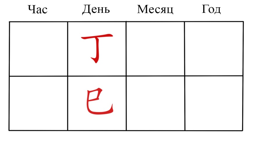 Для 丁 – 壬 как ПЧ, желательно в столпах иметь много 巳, тогда ДД будет крепким и сильным. В столкновении выдвигается 亥 ,у которого внутри 壬, тогда 丁 день получает ПЧ;
