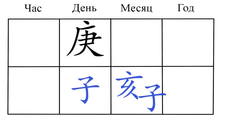 День 庚子, для 庚 – 丁 как Правильный чиновник, рождается в месяц 子, она является ВВ, тогда говорят «зло уживается». Если 子 много, в столкновение вступает 午, у которой внутри есть 丁, в таком случае день 庚 получает Правильного чиновника.