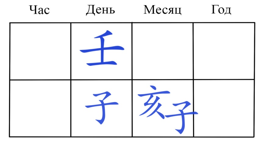 День 壬子, для 壬 – 己 ПЧ, желательно, чтобы внутри карты было много 子, сталкиваясь с 午 внутри у которой есть 己, в таком случае день 壬 получает ПЧ, любит и воздерживается точно так же, как 庚子.