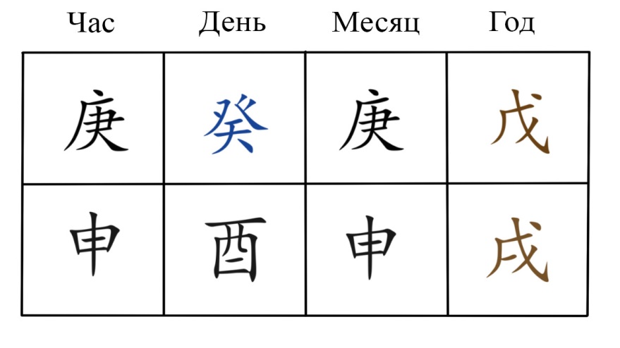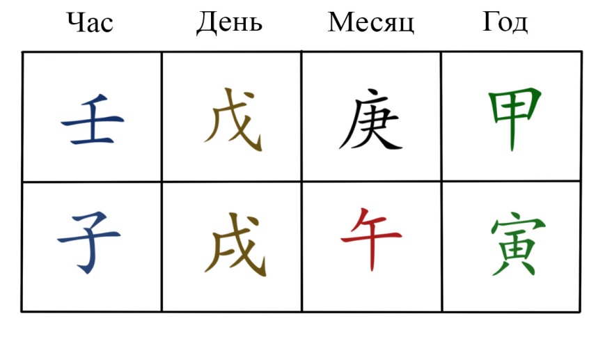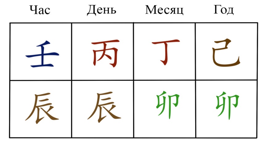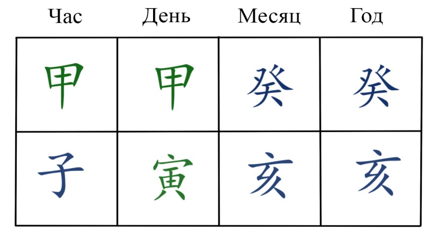 Например, 甲乙 в месяцы 亥子, 丙丁 в месяцы 寅卯 и так далее.