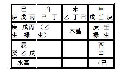 戊癸 хотят слиться, но между ними стоит 乙, из-за этого слияния не будет. Потому что структура Богатство чрезвычайно расходует Печать. Цяньтан (река на юго-востоке Китая) управляет структурой с глубокими красными корнями, имеется в наличие вельможа (крупный чин). Встречая богатство печать расходуется.
