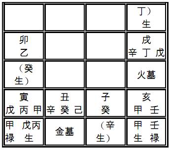 Так Огонь в фазе Рождения, рождается в столпе 寅, а Служебное благополучие обретает в 巳.