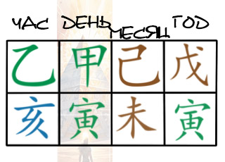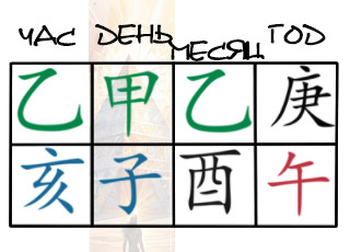 Два 乙 сливаются с 庚, 甲 в дне их отгораживает, это судьба правителя столичной области, по-прежнему не сливается и остается чиновник, не уменьшается счастье и благополучие.