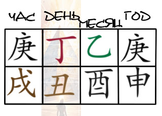 乙 использует 辛, как Ша. Если приходит 丙, то сливается и уходит. Если 乙 использует 庚 как чиновника, а в месячном столпе снова встречается 乙, претендуя на слияние. Тогда чиновник будет стоять ни с кем, не сливаясь и не уходя. Являясь в качестве чиновника, как расходующегося божества. Если же расходующееся божество, отчасти как-то разделено, то не поворачивается лицом к ДД. Так в женской судьбе встречающийся чиновник – это муж, тогда являясь в качестве звездного тела мужа не поворачивается, проникает насквозь, но не проницаем.