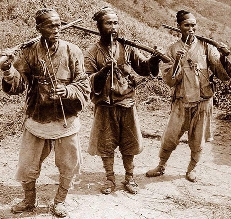 В общем, после этого подарка ван забыл, что он вассал Китая, и разрешил русским и джунгарским кораблям торговать в Пусане. Повезло с торговлей и в этот раз, и угля вполне сносного закупили для «Марии» и пятьдесят человек в матросы наняли из рыбаков, так, кроме того, Бабма сумел уговорить повоевать год за Великую Джунгарию очень интересных товарищей – побусанов или охотников на тигров. Охотники выглядели живописно. С древними аркебузами или большими луками с самих охотников размерами, все какие-то чёрные и мрачные. Сашка, увидев их одежду, которая явно с чучел была снята – такое рваньё, велел выдать им форму американскую. Ребята здоровые, потому подыскать их размер не составило труда. Переоделись охотники на тигров в американскую синюю форму, а потом скинули её и начали ножами перекраивать. Сюртуки превратили в жилетки, а бриджи в шорты по колено. Отрезали криво, нитки болтаются, но побусаны довольные сидят на палубе кружком, окутавшись дымом из длинных трубок, и ржут. Дети леса. Но потом показали себе, как отменные стрелки, если и хуже калмыков, то чуть. Оно и понятно, промахнись по тигру и это будет твой последний промах.