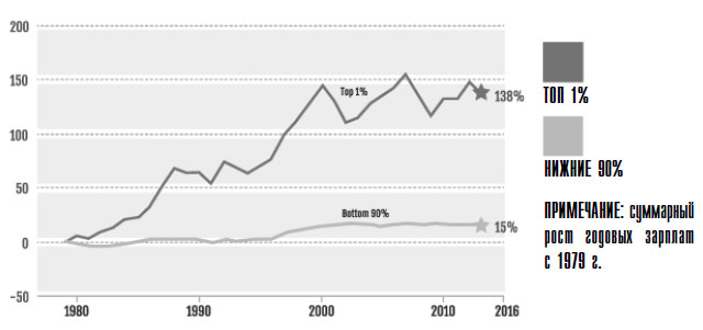 Нет, это не битва с богатыми. Черт возьми, в этой книге я как раз предлагаю привычки, помогающие стать богатыми или увеличить богатство, которое у вас уже есть. Но статистика не лжет. Если вы не подготовлены и не вооружены соответствующими инструментами, сдвиг, происходящий в Америке, может сильно повлиять на вас. И когда я увидел график (рис. 2), приведенный ниже, то понял, что должен им поделиться. До 1981 года доходы всех классов росли примерно с одинаковой скоростью. Однако затем начался раскол. Один процент отделился от толпы, и с тех пор доходы верхнего, единственного процента получателей доходов, выросли на 138 %, а доходы нижних 90 % получателей – только на 15 %.
