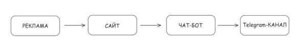 Воронки бывают длинные и короткие. Длинные воронки используют разные источники трафика, а короткие – оформлены внутри одной площадки, например, в том же Telegram. Давай я приведу пока общий пример, чтобы стало понятно, о чем речь.