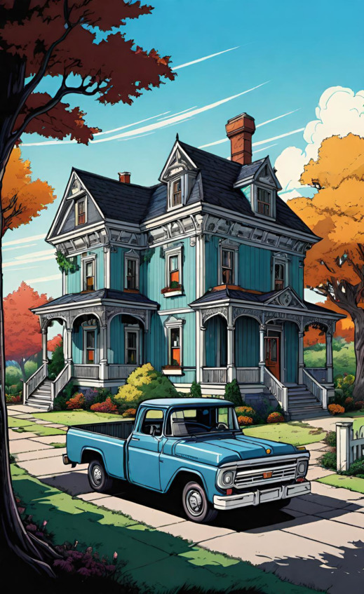 The last rays of the sun, painting the sky in hues of crimson and violet, vanished beyond the horizon. The quiet suburban neighborhood slowly succumbed to twilight as darkness crept in. A blue delivery truck rounded the corner of the house next door.