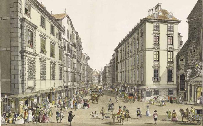 Герб семьи фон Кизов Вена. Вид на улицу Кольмаркт в 1786 году. Венский музей