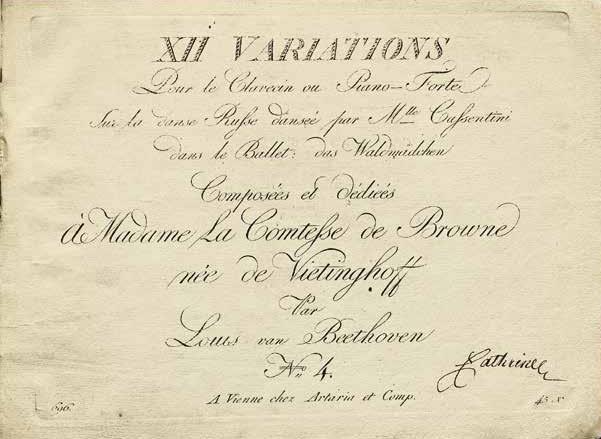 Титульный лист первого издания Двенадцати вариаций для фортепиано на тему русского танца, посвященных графине Броун.