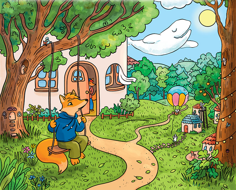 Наконец-то! Шустрик соскочил с качелей и подбежал к лисятам, показавшимся на крыльце.