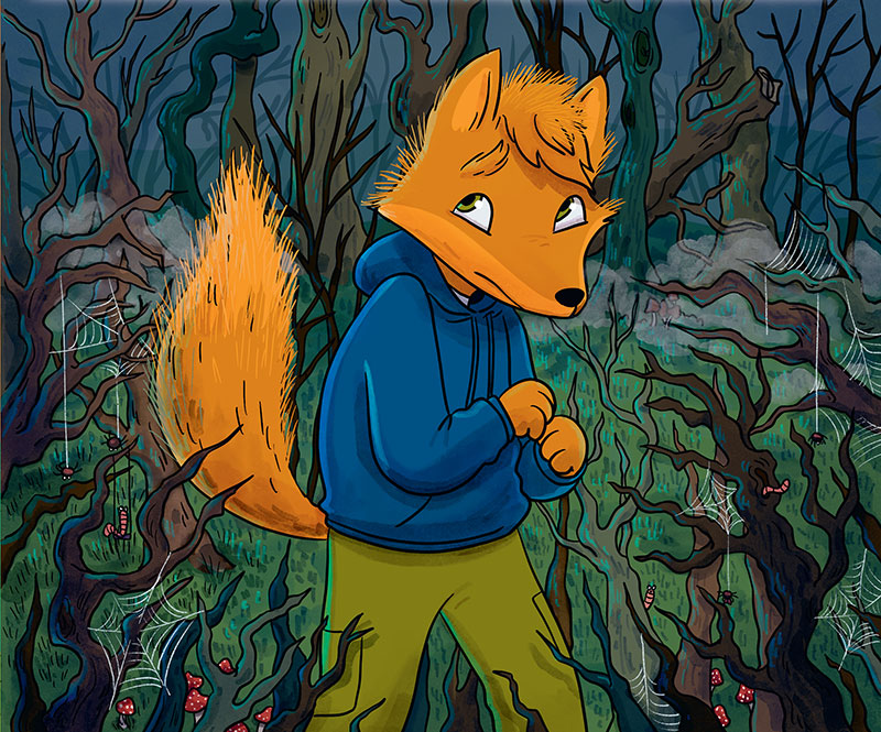 Шустрик зажмурился, чтобы не видеть этого, и снова открыл глаза. Ничего не изменилось. К огонькам добавился писклявый шёпот: «Ты-ы-ы придёш-ш-шь». Шёпот окончательно поверг лисёнка в ужас, он зажмурился так сильно, как только мог!