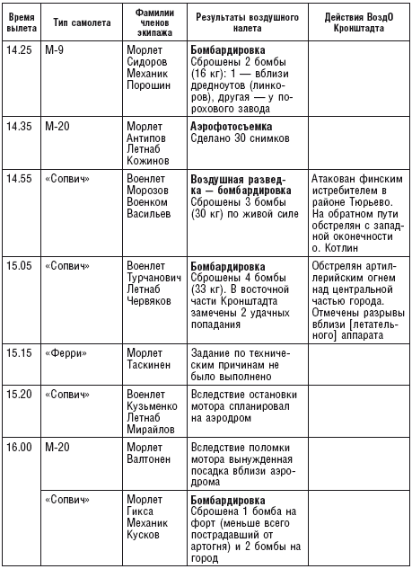 В свою очередь, с целью исключения обстрела своих самолетов штаб воздушной обороны Петроградского укрепрайона потребовал от авиационных начальников заранее информировать его обо всех предстоящих полетах в восточной части Финского залива за три часа до вылета37. Но в условиях плохой погоды экипажи зачастую узнавали о своем вылете лишь за 5—10 минут до его совершения. В конце концов был введен полный запрет на открытие зенитного огня в надежде, что у «мятежной» стороны отсутствует собственная авиация.