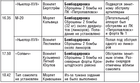 Вследствие высокой интенсивности воздушных налетов на морскую крепость возникли определенные трудности по отслеживанию маршрутов движения самолетов. Ситуацию осложняло то обстоятельство, что доклады о полетах приходили в штаб воздушной обороны Петроградского укрепрайона несвоевременно и не всегда оказывались достоверными. Так, в районе 16 ч 25 мин наблюдателями Южного БУ был замечен неизвестный самолет, летевший со стороны Кронштадта к форту «Краснофлотский». Однако, не долетев до него, ЛА повернул назад. Не удалось установить и его опознавательные знаки.