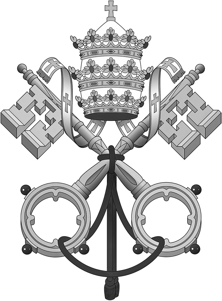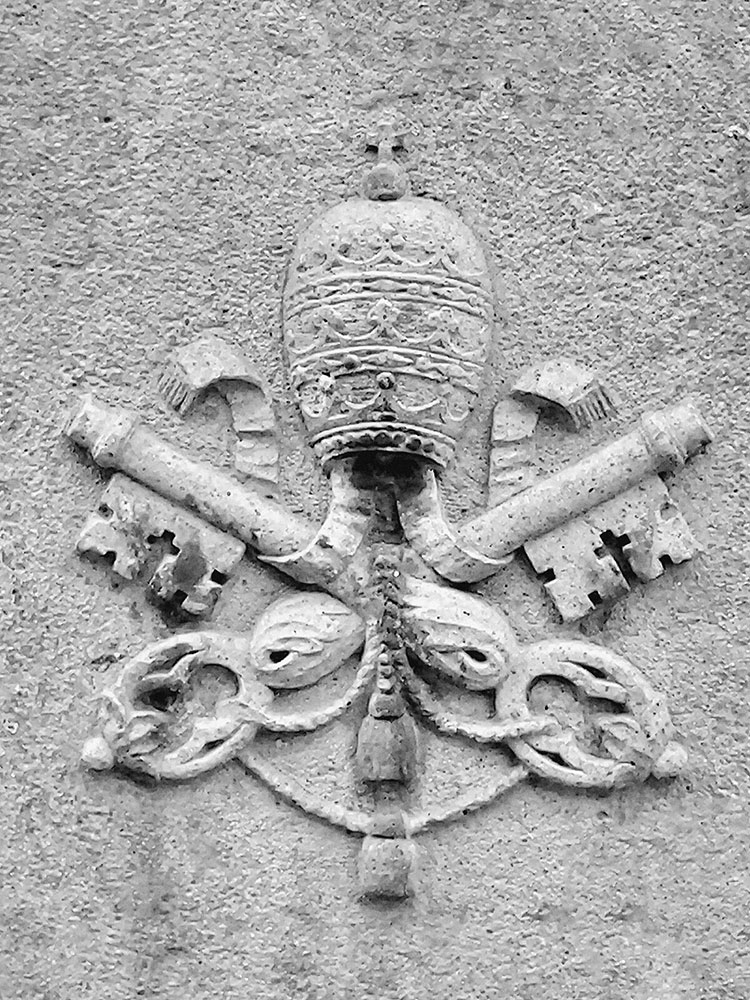 Гуляя по улицам Вечного города, проходя вдоль его старинных зданий и фонтанов, путник видит не просто колоритную европейскую столицу. Перед ним предстает оплот католицизма во всей его красе. То там, то здесь, с фасадов гордых базилик и статных палаццо, взору открываются величественные ключи, скрещенные между собой и увенчанные папской тиарой. Эти ключи, один золотого, другой серебряного цвета, являются отсылкой к евангельской истории, согласно которой Иисус Христос обещал апостолу Петру, что даст ему ключи от Царства Небесного.