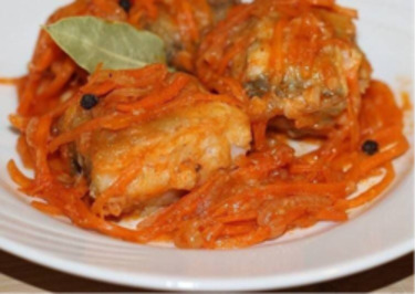 1-2 луковицы, нарезанные полукольцами, и морковь, натертая на терке;