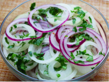 В воде разбавляем сахар, соль, уксус. И заливаем этой смесью кольца или полукольца луковиц в стеклянной таре. Убираем в холодильник. Через полчаса все готово.