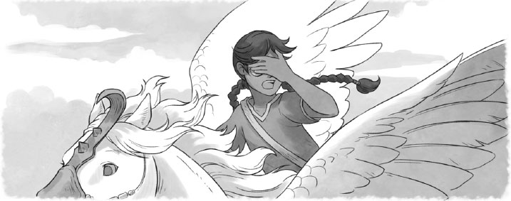 Раат и Снежок удвоили скорость. Они мчались так быстро, что ледяной ветер колол щёки и глаза Кинджала, словно крошечными ножами. Он посмотрел на сестру – стёкла её очков запотели и покрылись изморозью, так что она почти ничего не видела. Лошадиные гривы заледенели, на ноздрях повисли сосульки.
