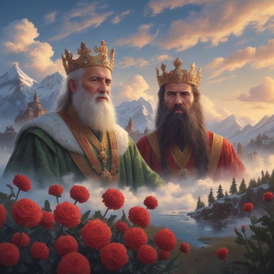 В далеком царстве, где солнце светило ярко, а реки текли чистыми и быстрыми, жили два короля. Одного из них звали Февроний, а другого – Михаил. У каждого из них было свое королевство: Февроний правил мирной и процветающей страной, где жители были счастливы и довольны, а Михаил – темным и угнетающим королевством, где подданные жили в страхе и бедности.