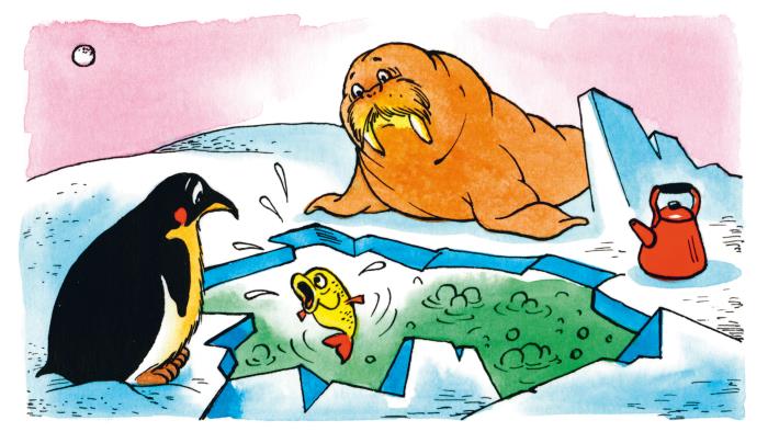 – Я в школе не учился и даже читать не умею, – шмыгнул носом шпион Дырка, – но даже я знаю, что в этой Антарктиде очень-очень холодно. Прямо как в холодильнике.