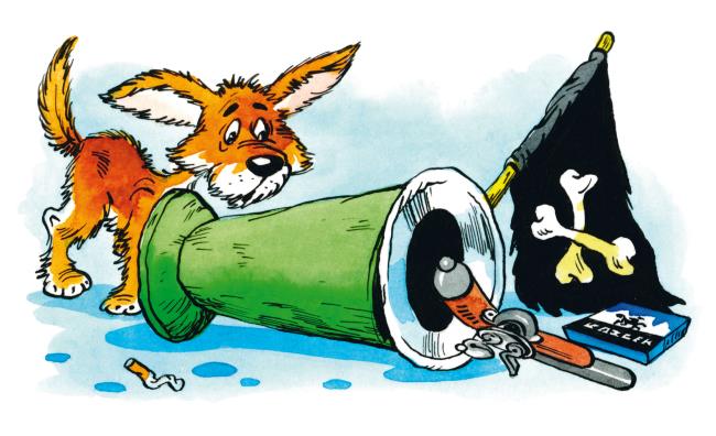 – Три тысячи чертей на румбу! – обрадовался пират, уставившись в подзорную трубу. – Кого я вижу! Это же профессор Пыхтелкин, лучший друг Карандаша и Самоделкина.