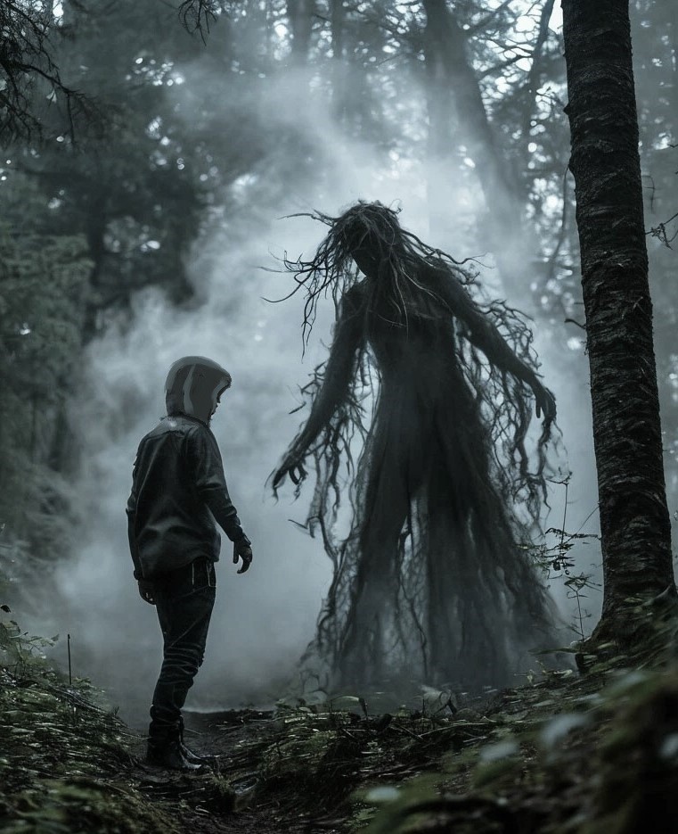Несясь по лесу, перепрыгивая через поваленные стволы деревьев, царапая куртку о ветви кустов, он слышал за спиной тяжёлое дыхание: чудовище не отставало! Вот когтистая лапа почти ухватила его за капюшон. Но Сергей увернулся в последний момент.