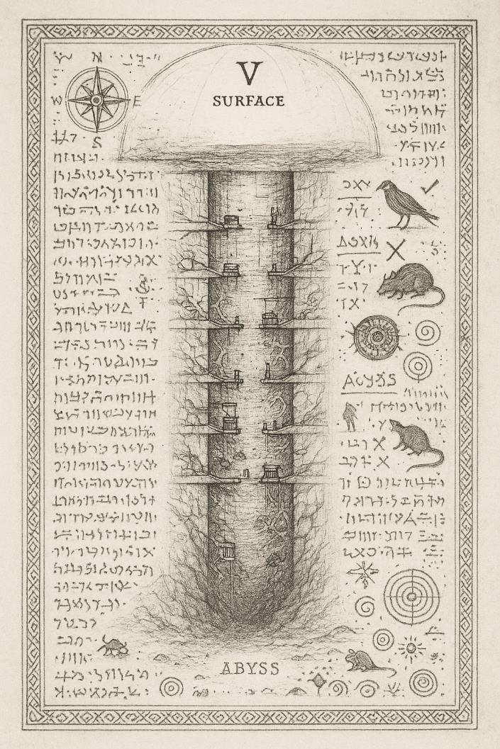 Где кончается шахта – никто не знал. Внизу начиналась бездна. Туда сбрасывали пустую породу и хоронили мёртвых – места на поверхности не хватало. Иногда кто-то пытался спуститься вниз, чтобы найти дно, но ни один исследователь не возвращался.