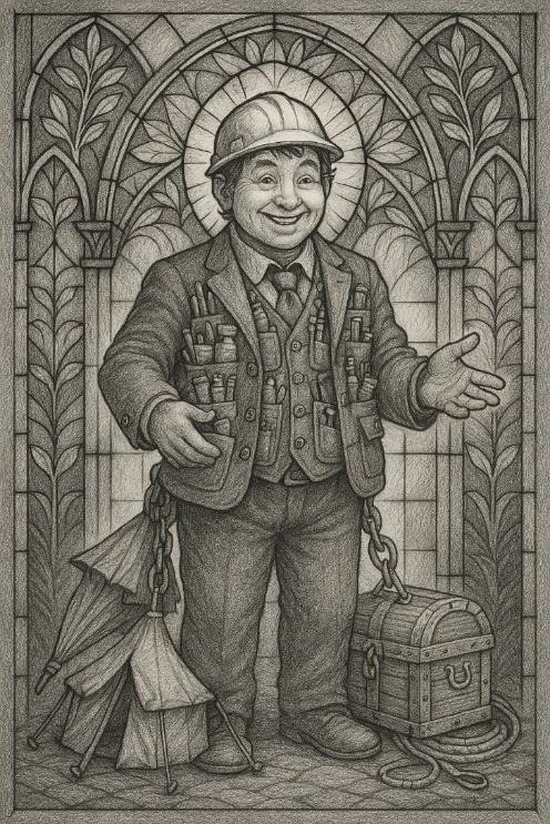 Готовится вместе со своей бригадой зайти в лифт. Перед ними высилась громадина из металла и камня – древний механизм, оставшийся с незапамятных времен. Огромные шестерни, покрытые вековой пылью, глухо скрипели, когда машина оживала. Выделенный на сегодня бригаде один из лифтов, ведущий в глубину шахты, напоминал скорее чудовище, затаившееся в темноте. Его массивные створки были испещрены странными знаками, которые никто уже тысячелетия как не умел читать. Светящиеся линии на корпусе слабо пульсировали, будто железный великан дышал. Творение империи Элу – артефакт давно минувших времен, когда люди летали над землей и совершали много других чудес.