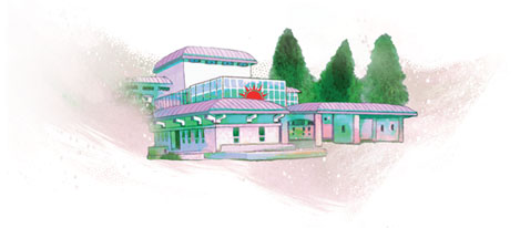 Музей ёгве был разделён на несколько зон: кафе, Призрачный зал, Зал ёгве и исследовательскую лабораторию.
