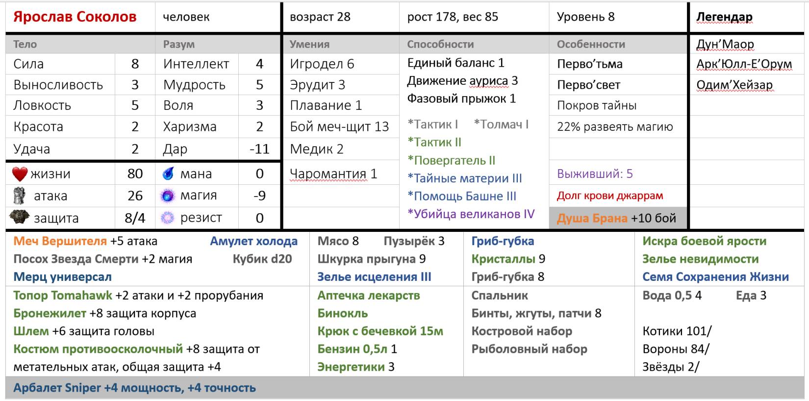 Осталось распределить очко умений. Что может быть полезно начинающему нульту? Чистота давала чутьё всех стихий, пока на довольно малом расстоянии. Не будь я создателем и знатоком системы, качал бы теоретические знания магии и стихий. Но после пятнадцати лет игр я мог читать по стихиям и магии лекции. Вкладывать в медика дальше базы представлялось ненужным – да, мед.знания всегда полезны, но для нульта не приоритетны.
