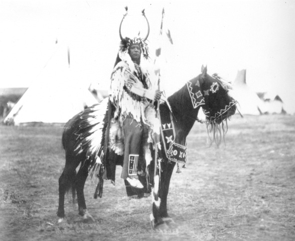 Преувеличенное проявление силы и враждебности в присутствии потенциальных врагов было обычным делом для индейских воинов. Нередко они поражали белых экстравагантностью внешнего вида: носили совершенно невероятные и грозные амулеты вроде скальпов, частей человеческого тела и животных и т. п. Эти методы психического воздействия применяли многие племена. Нечто подобное описал канадский торговец Александр Генри, когда он в 1806 году сопровождал торговый караван манданов и хидатса в лагерь шайеннов. Когда они приблизились к шайеннской деревне, навстречу к ним выехала группа молодых людей, чьи лошади «были украшены в совершенно исключительной манере: они имитировали головы бизона и красного оленя или карибу – с рожками, ртом и ноздрями, и даже глаза их были вырезаны из красной ткани. Это украшение позволяло им производить особенно устрашающее впечатление».