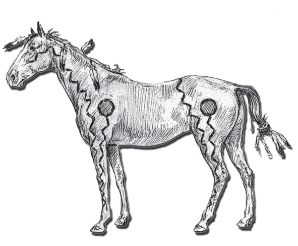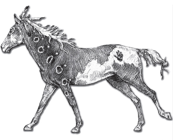 Индейцам нравилось раскрашивать своих лошадей. Любопытный факт – раскраска лошадей была распространена исключительно только в Северной Америке. Даже индейцы Мексики или Южной Америки, например, патагонцы, никогда не раскрашивали своих пони. В этом отношении Великие Равнины Северной Америки представляют собой уникальный случай во всей мировой истории. Этот факт дополнительно, пусть и косвенно, подтверждает, что индейцы относились к лошадям как к равным, как к братьям и товарищам по оружию.