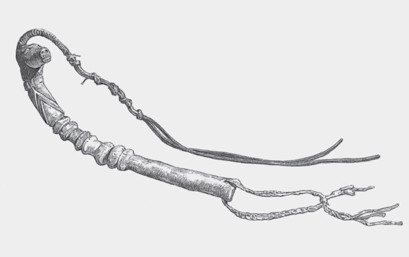 Имеются хлысты и другого рода. В музеях они зачастую фигурируют под названием «собачьих хлыстов». Конечно, ими погоняли собак, хотя рукояти их очень длинные, а распущенные концы из растительных волокон или сыромятной кожи не позволяют нанести серьёзного удара – скорее коснуться. При этом на некоторых картинах времён освоения Запада индейцы (чаще женщины) изображаются на лошадях именно с такими хлыстами. Их рукоять ещё длиннее, а верёвка мешает удару. Таким хлыстом можно только коснуться ног лошади, направить её в нужную сторону, подсказать смену аллюра, но причинить серьезную боль достаточно проблематично. Интересно, что во многих легендах племён липан и мескалеро главный обладатель Лошадиной Силы и прекрасных табунов – персонаж по имени Cowbird – обладает именно такой длинной волшебной палкой (в легенде она чёрного цвета и сделана из неизвестной породы дерева), помогающей ему общаться с лошадьми. Вывод напрашивается один: индейцы не ставили целью как можно больнее ударить лошадь, хлыст должен был помочь хозяину в общении с лошадью, а не в её подчинении.