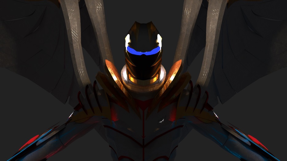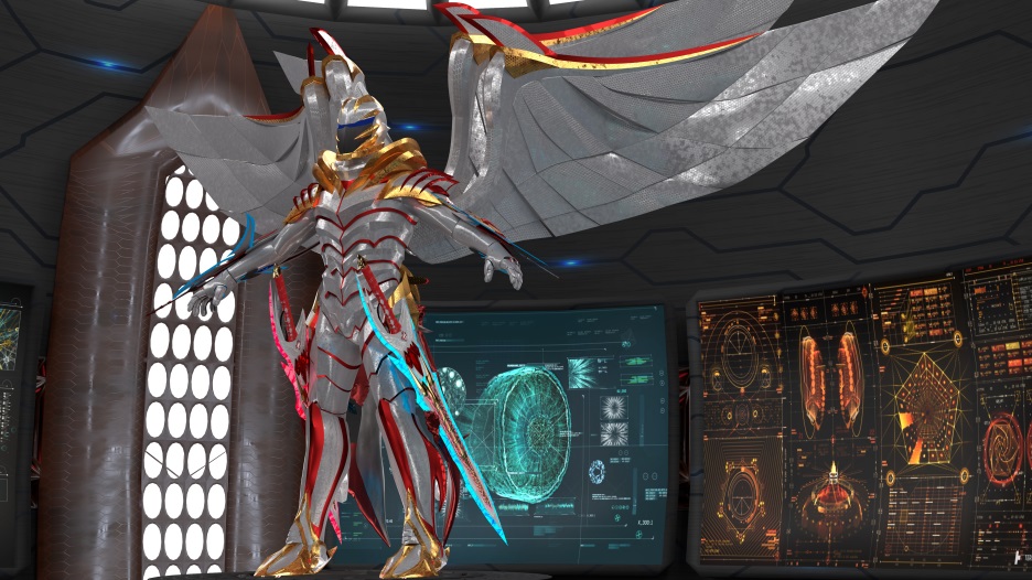 Но Стелла видела только большого одетого в боевые доспехи Ангела до зубов обвешанного оружием. Четыре огромных металлических крыла величественно красовались со спины, а между ними по спине спускался красивый плащ, чем ниже он опускался, тем шире становился, а затем и вовсе разделялся на две части. На плечах с каждой стороны находилось по 5 лезвий: два крупных и три поменьше. На груди красовалась изящная надпись М.И.Р.А, а под надписью была эмблема с двумя крыльями, выстроенными в три слоя: внешний и внутренний слой перьев, при этом излучали белый свет, а внутренний был сделан из тёмного стекла, между крыльев располагалась красная сапфировая капля. На поясе крепились два очень массивных меча, у них также были свои имена: Исповедь и Истина.