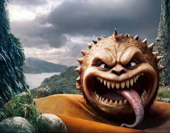 «Это я что ли „угощеньице“?» – опешил Илья. Он крадучись пробрался к окну и выглянул во двор. Постоялец икнул от неожиданности, крепко зажмурился, снова посмотрел: нет же, не показалось! Во дворе находились хозяева дома и… Колобок? Если по чесноку, меньше всего это чудище смахивало на румяный мучной кругляш. Монструозный шар метра два в диаметре, весь покрытый непонятными наростами, волдырями, коростой, грязно-бурого цвета, глаза сверкают, подобно угольям, в огромной пасти виднеются гнилые клыки.