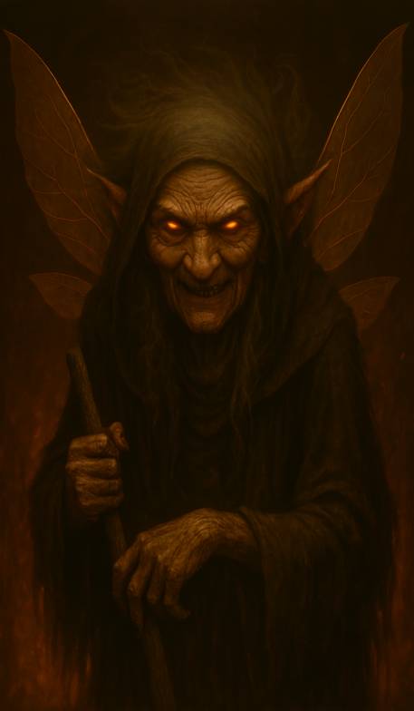 – Как ты попал сюда? – спросила одна из старух фейри, её голос был полон удивления и подозрения.