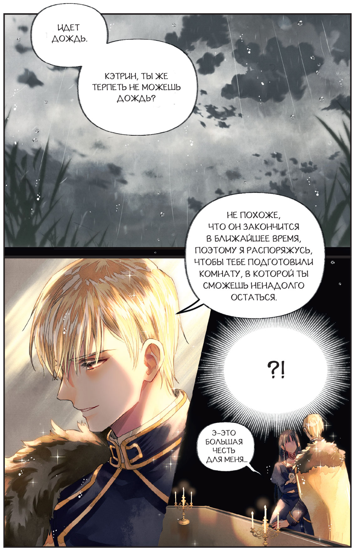 Это не звучало как принуждение, что сильно сбивало с толку. Но одно было ясно наверняка: он не позволит ей сейчас покинуть дворец. Кэтрин, у которой не было другого выбора, кроме как подчиниться, прикусила кончик языка и выпрямилась.