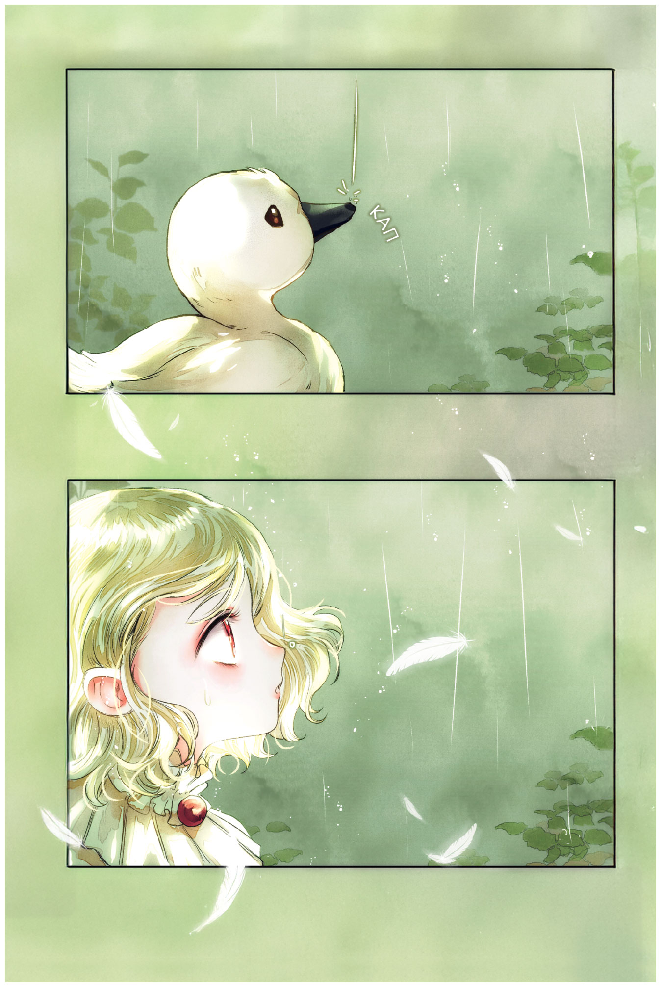 Подавив готовый вырваться из груди крик, Кэтрин бережно взяла лебеденка на руки. Когда она встретилась взглядом с малышкой, которая не могла скрыть своей радости от происходящего, фиолетовые глаза Кэтрин беспокойно забегали…