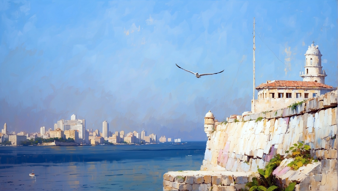 А ведь так хотелось посмотреть на крепость не с набережной, а изнутри! Тем более, что это была не просто какая-то захудалая фортеция, а мощнейшее сооружение со множеством бастионов, ретраншементов, башен, тайных ходов, казематов, пороховых погребов… Строили его долгие века и потратили на возведение такое количество денег, что испанский король Карлос, которому доложили о сдаче долгостроя в эксплуатацию, взял подзорную трубу, вышел на балкон в своём мадридском дворце и уставил трубу в сторону Америки, где и должна была стоять крепость эль Моро. На недоумённые вопросы придворных, что король пытается разглядеть в окуляр, Карл ответил, что, судя по затраченным средствам, на Кубе выстроена такая громадина, что её должно быть видно из Европы…