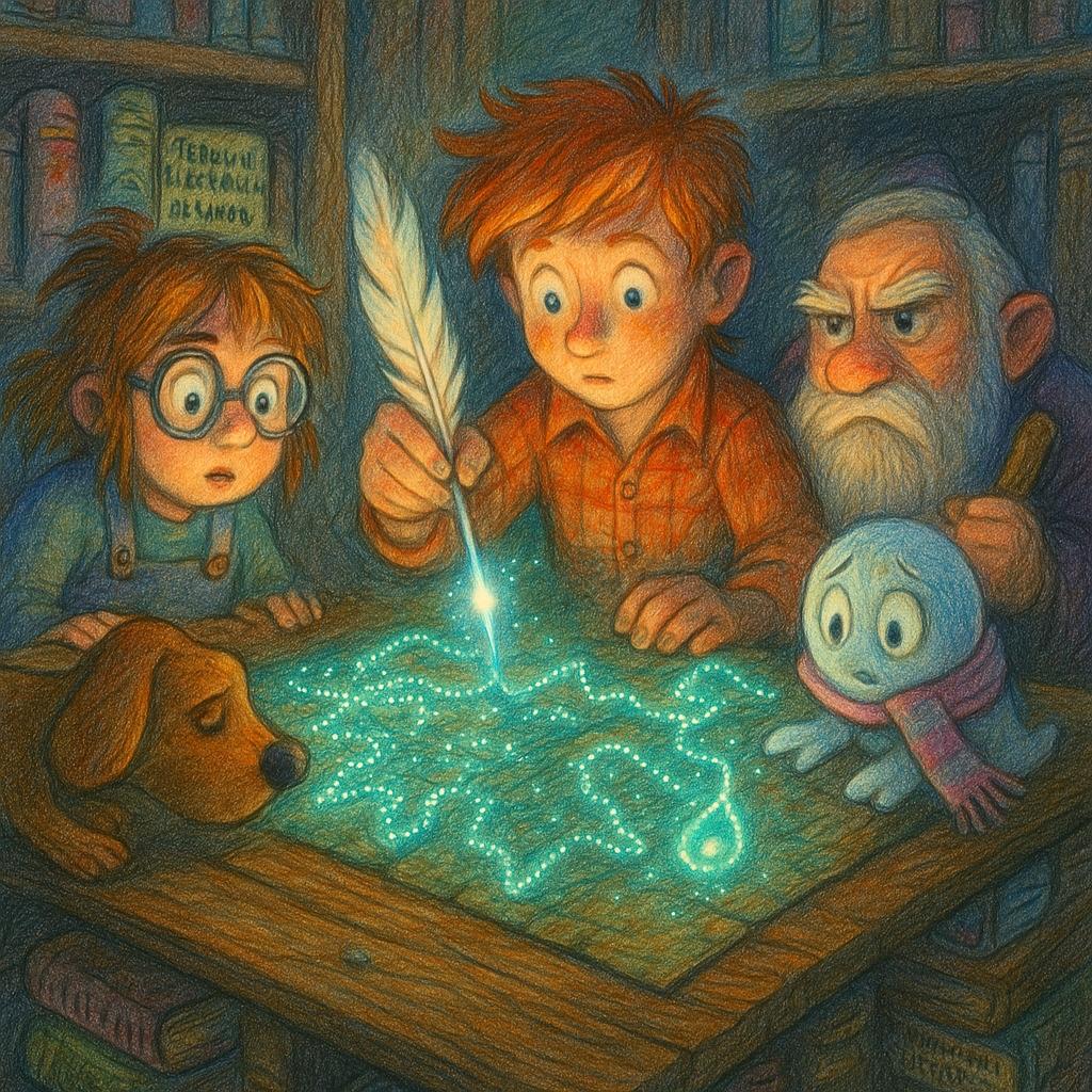 В дальнем углу, за горой фолиантов с названиями вроде «Теория Взбивания Облаков для Практического Применения» или «Песни Камней для Начинающих: Как Разбудить Гранит и Усмирить Базальт», мерцал слабый, но упорный голубоватый огонёк. Он не был похож на солнечный луч. Он светился изнутри, холодно и загадочно. Они осторожно, стараясь не потревожить сон книг, подошли. Источником света оказалась не лампа и не волшебный кристалл. Это была… карта. Но не нарисованная на пергаменте, а выложенная из сотен крошечных, мерцающих бирюзовым светом бусинок на огромном, почерневшем от времени дубовом столе. Она изображала Веселундию, но незнакомую, причудливо искаженную. Радужный мост вился змеёй, упираясь не в реку, а в пропасть. Парк Вечных Качелей был строго квадратным и разделенным на клетки. А на месте мастерской отца Джо-Джо зияла угрожающая черная дыра, помеченная рунической надписью: «Разлом Сожалений».