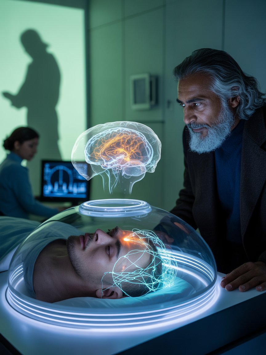 Подготовка к эксперименту заняла несколько часов. Илья прошёл серию медицинских проверок, затем его тело было покрыто специальным составом, улучшающим проводимость для нейросенсоров. Десятки датчиков были прикреплены к ключевым точкам его тела, особенно к голове, где концентрация сенсоров была наибольшей.